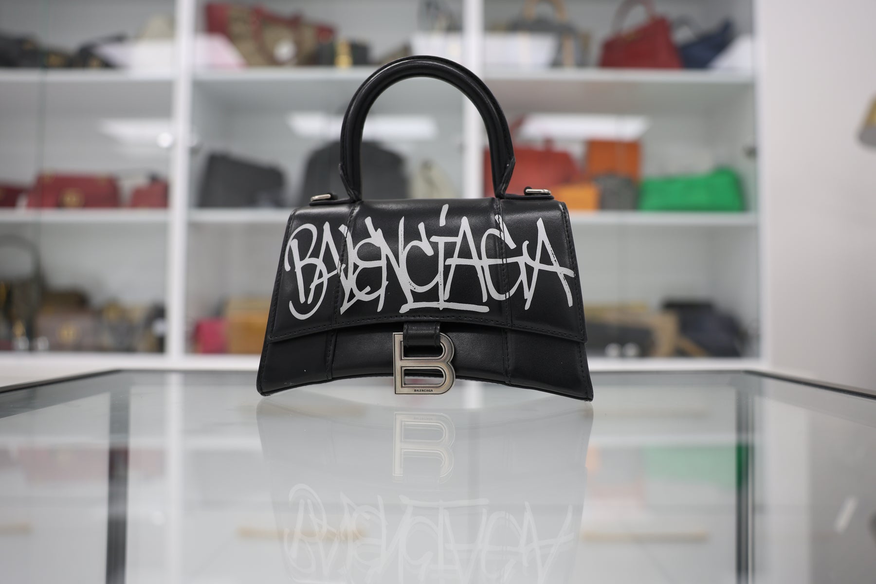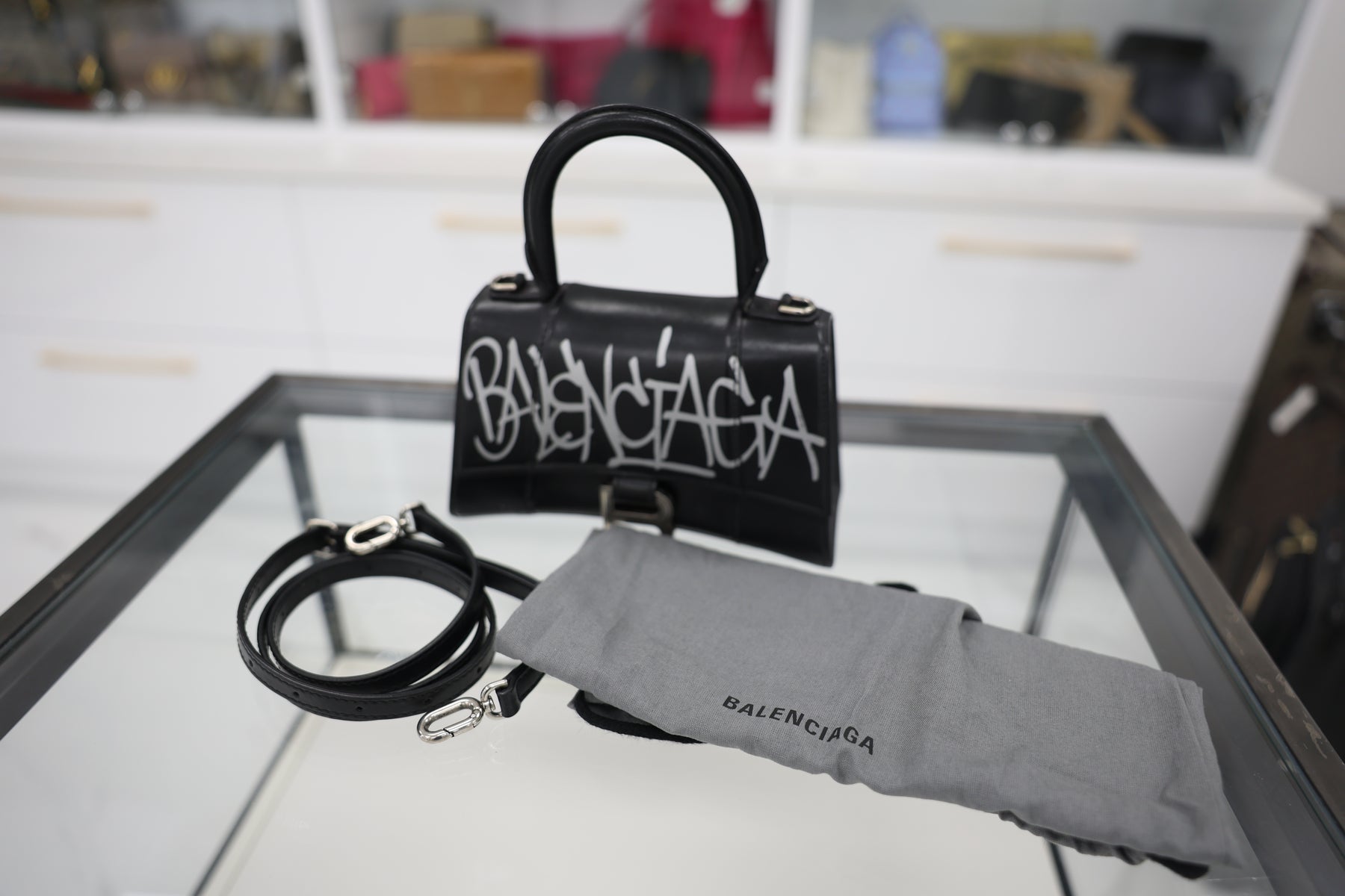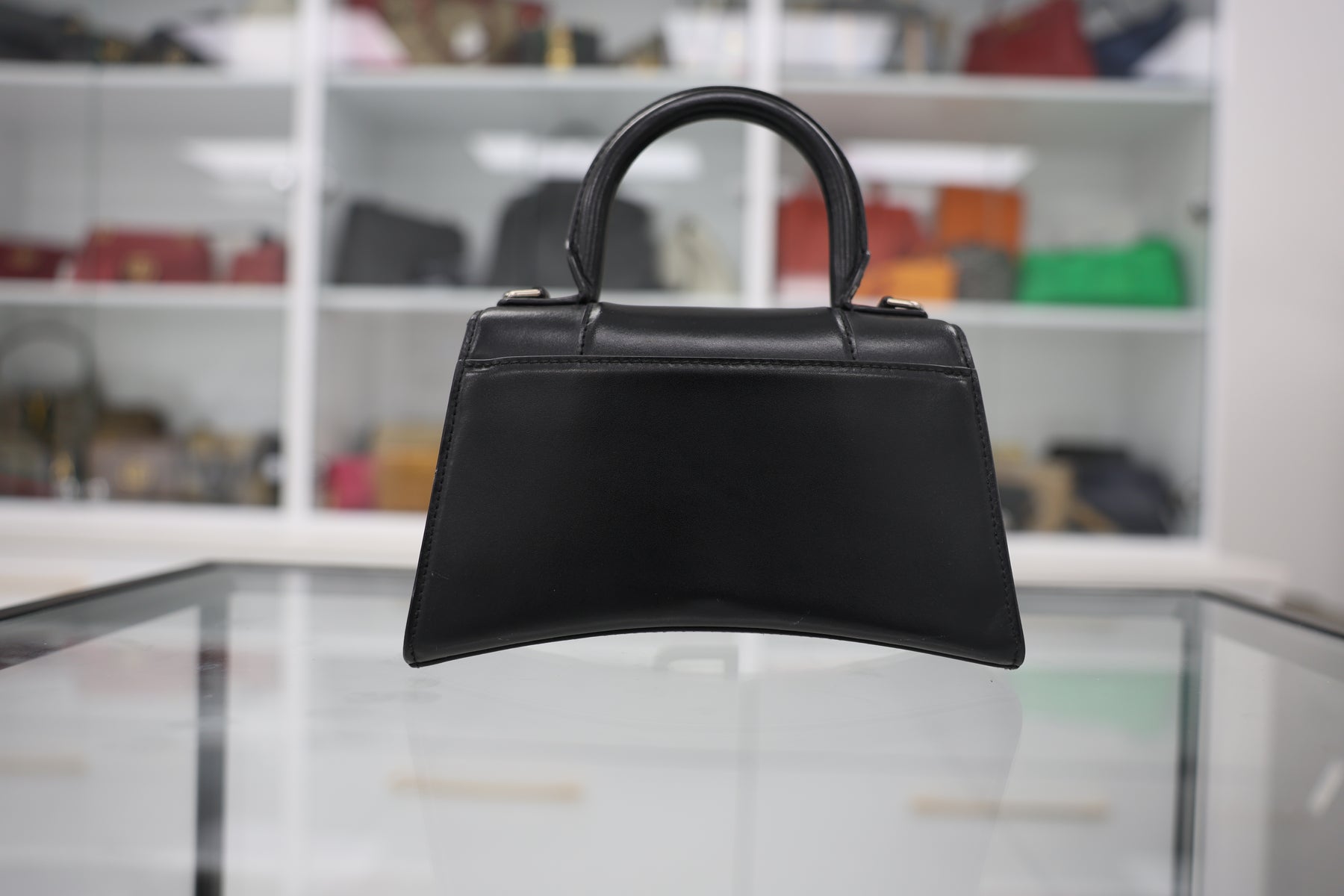 The Balenciaga Small Hourglass Tote Bag exemplifies contemporary luxury with its signature sculptural silhouette. Crafted from premium materials, this compact tote features the iconic hourglass shape that defines the collection, offering refined elegance without sacrificing practicality. The structured design accommodates daily essentials while maintaining a sophisticated profile suitable for both professional and leisure settings. Interior organization and quality hardware ensure lasting durability. An investment piece that seamlessly transitions across occasions, this tote represents Balenciaga's mastery of modern handbag design.
