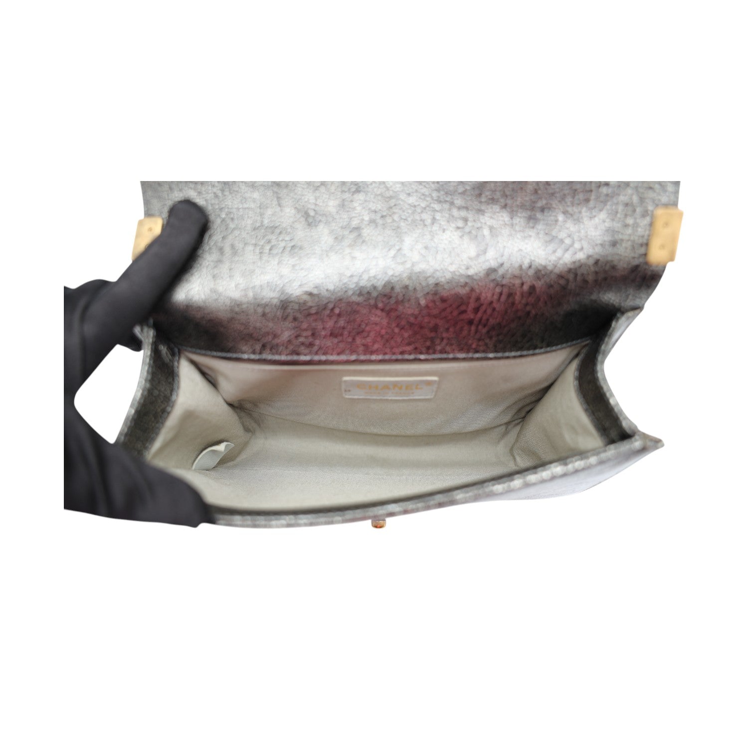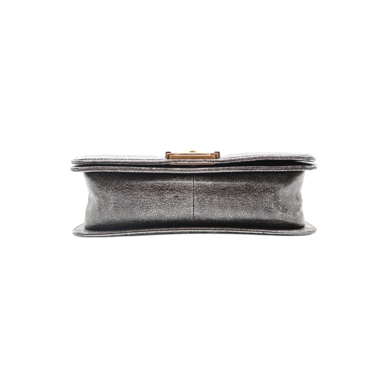 CHANEL Boy Medium Calfskin Metallic Silver Bag