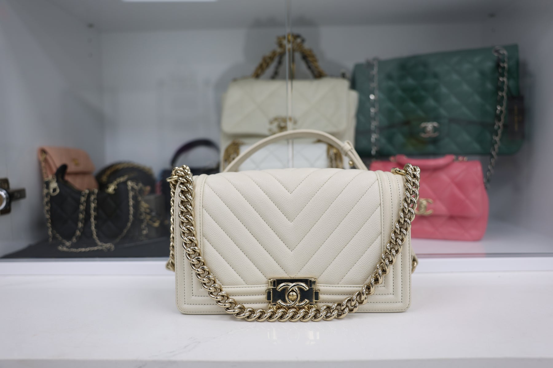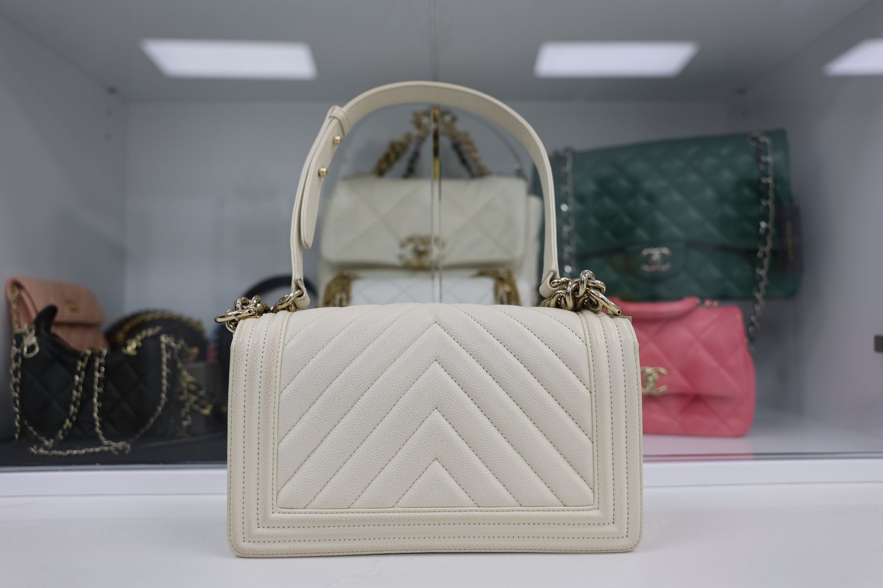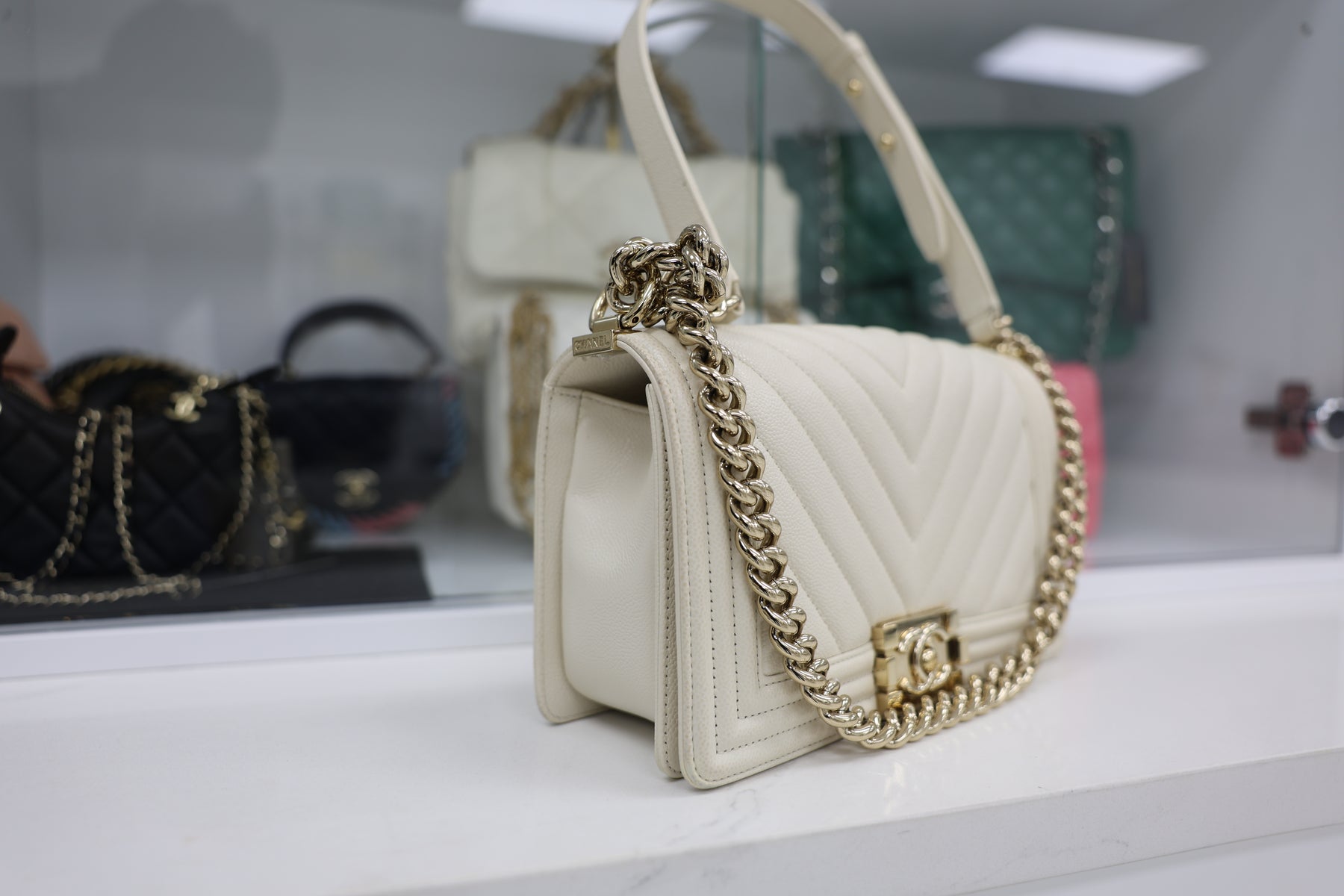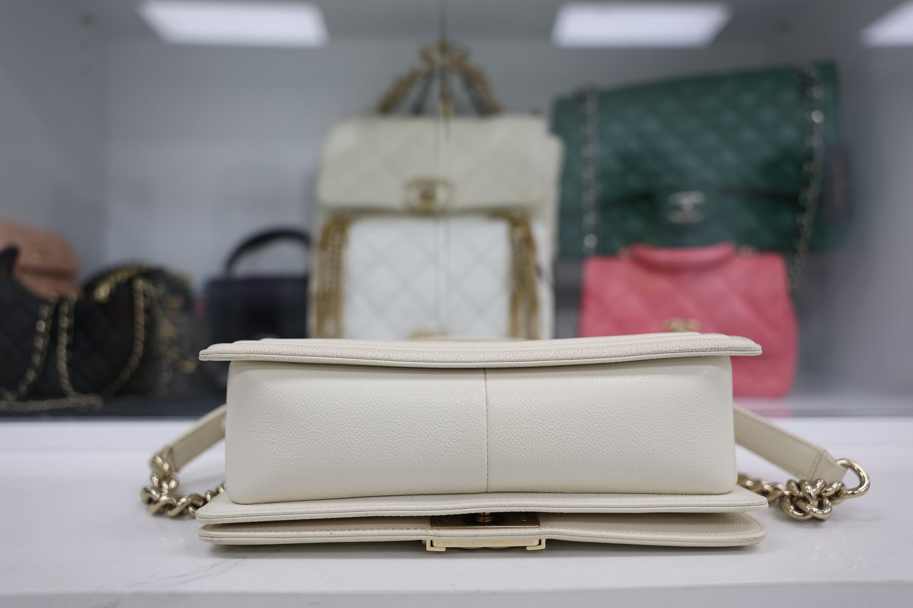 The CHANEL Caviar Boy Handbag combines timeless elegance with modern sophistication. Crafted from luxurious caviar leather, this iconic silhouette features the signature interlocking CC hardware and structured boy bag design. The quilted texture provides durability while maintaining a refined aesthetic, perfect for both everyday wear and special occasions. With its versatile size and adjustable chain strap, this investment piece seamlessly transitions from day to night. A coveted addition to any luxury handbag collection.
