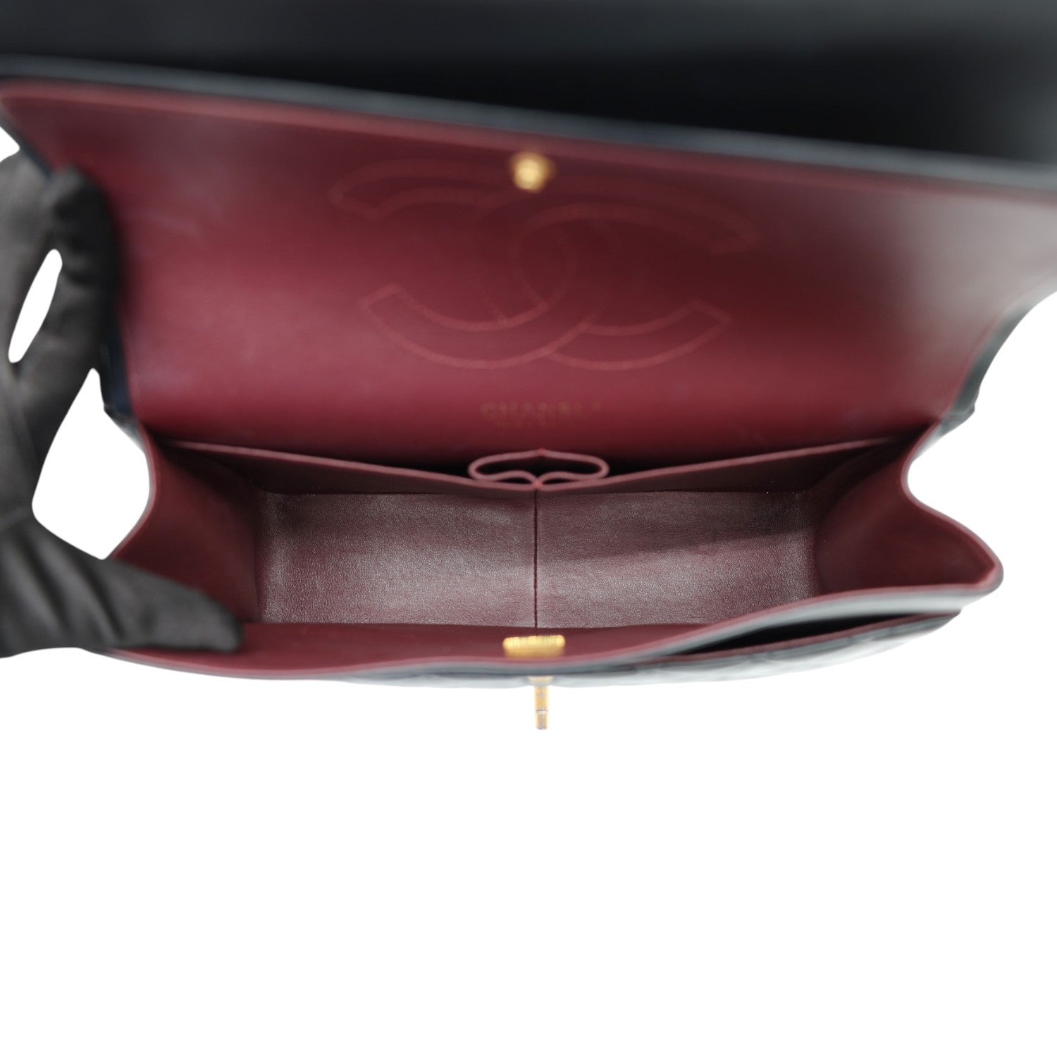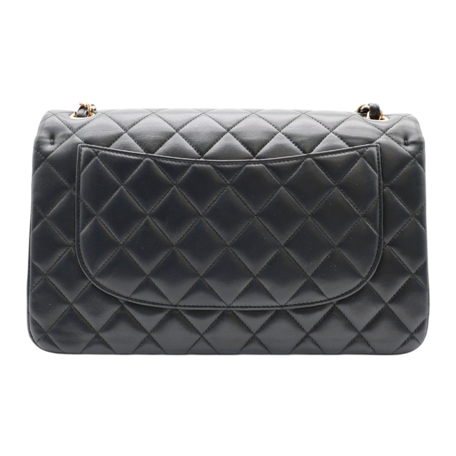 The CHANEL Double Flap Lambskin Leather Jumbo Shoulder Bag In Black is a statement piece for any outfit. This bag combines elegance with practicality, featuring a double flap design. The lambskin leather ensures a luxurious feel. Perfect for those who appreciate both style and functionality.