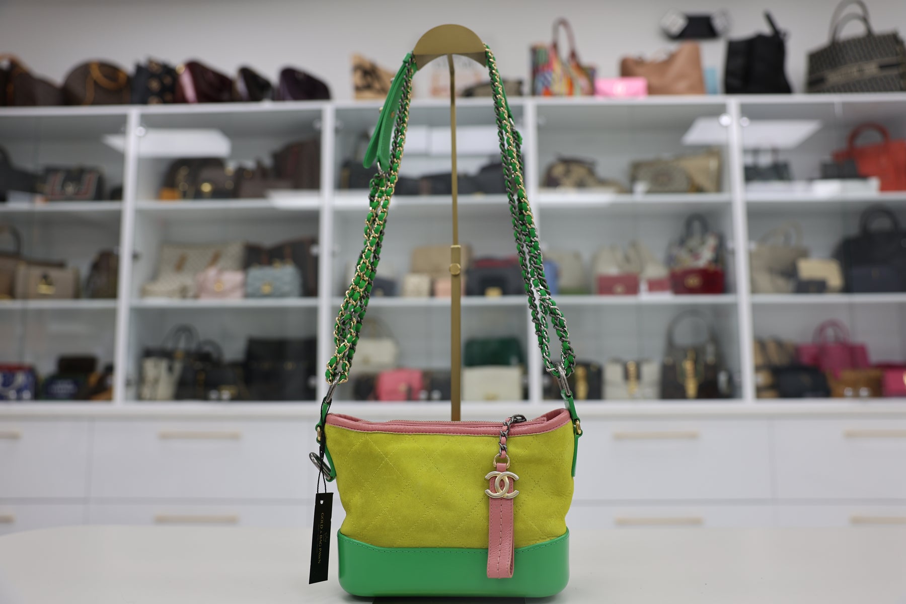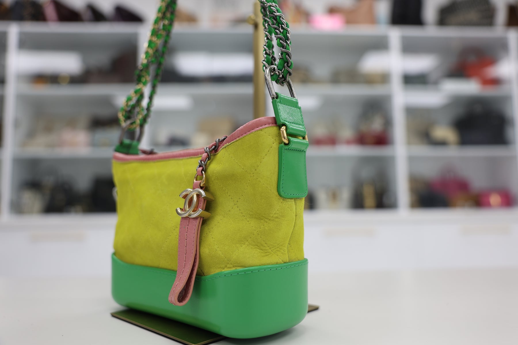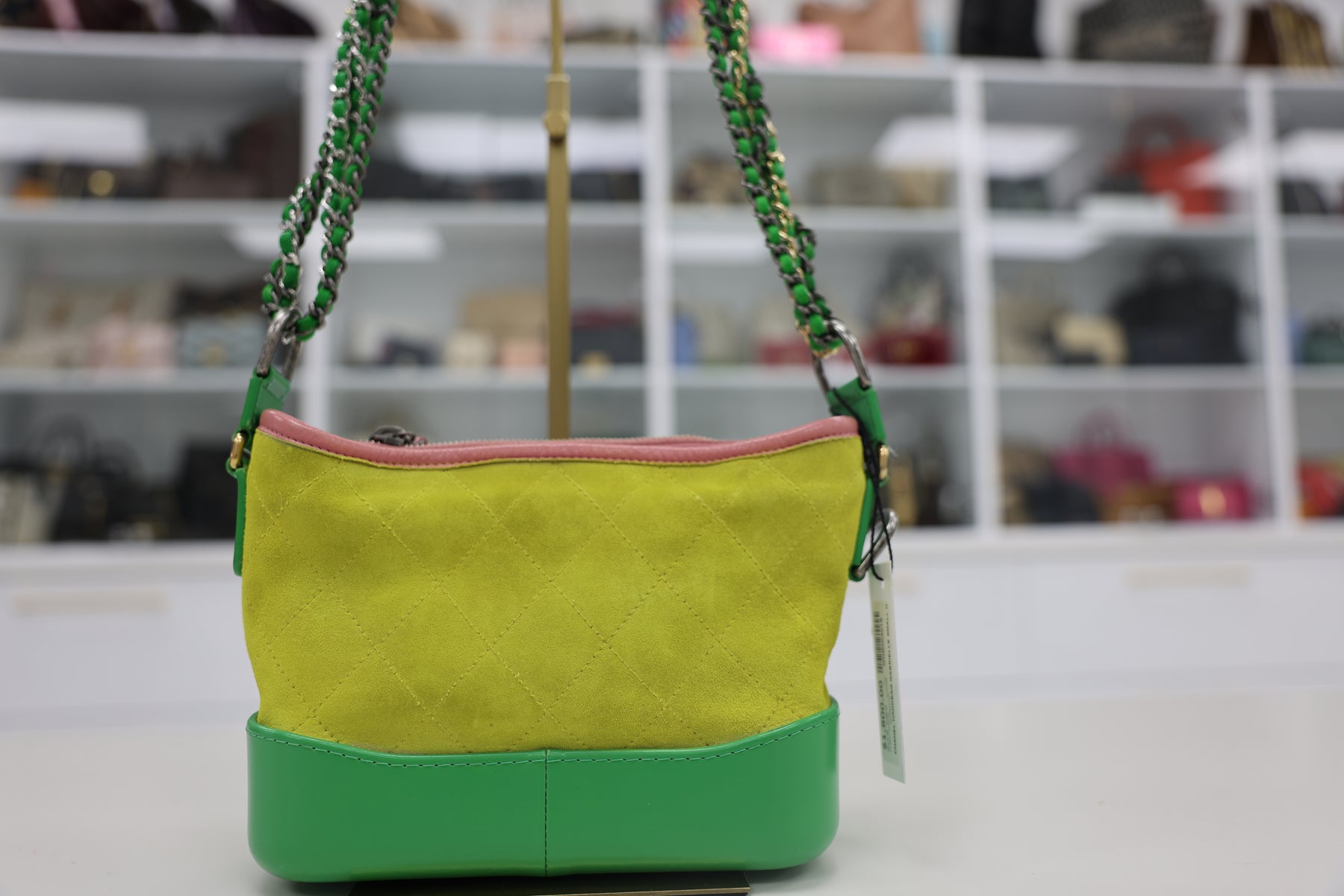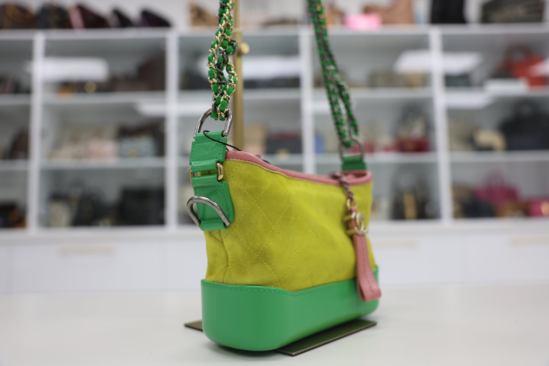 Authentic pre-owned Chanel Small Gabrielle handbag featuring the iconic quilted design and chain strap. This classic piece shows normal signs of wear consistent with pre-owned luxury items, including minor scuffs and patina on hardware. The structured silhouette and versatile size make it perfect for everyday elegance. Includes signature Chanel craftsmanship with leather construction and adjustable chain shoulder strap. A timeless investment piece for the discerning collector.