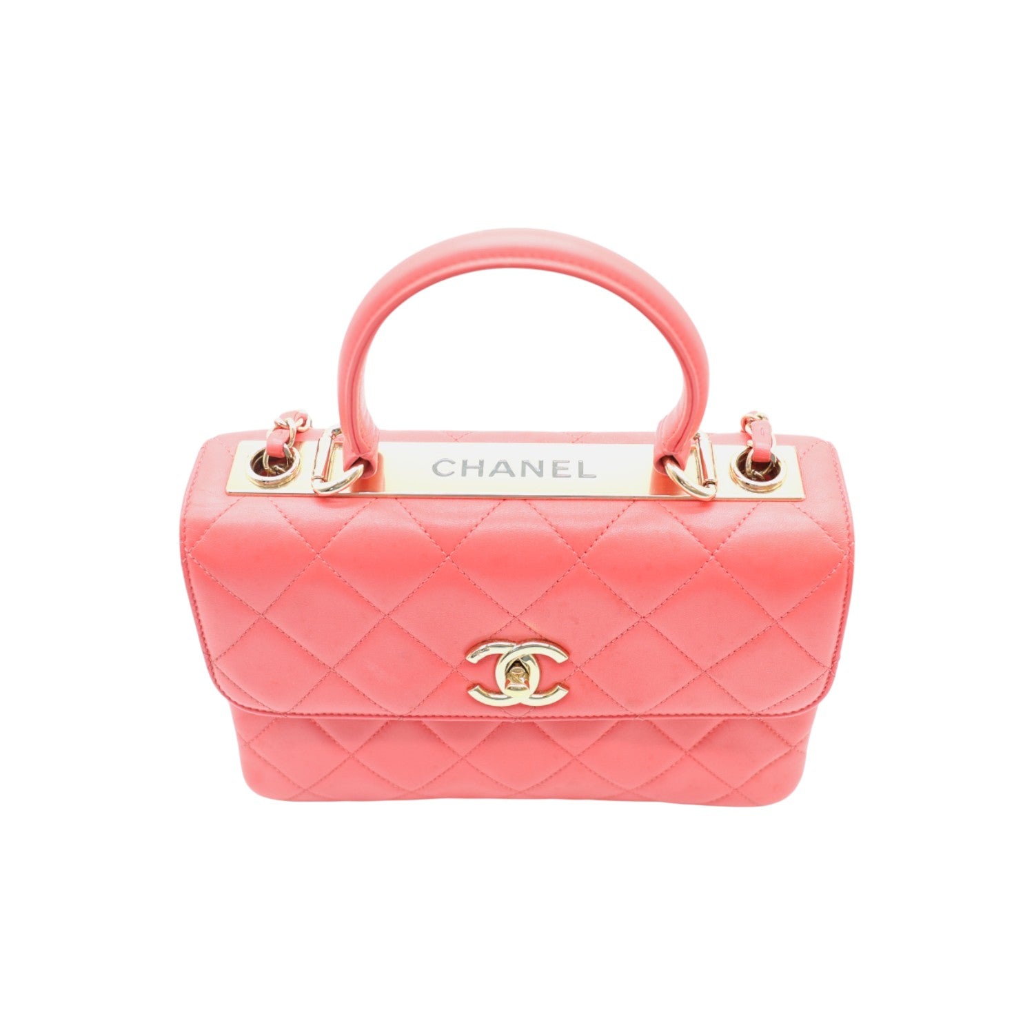 Color & Design The handbag is available in a trendy pink color, adding a pop of color to your outfit. It features a small size and a CC flap design, perfect for a compact and stylish accessory.