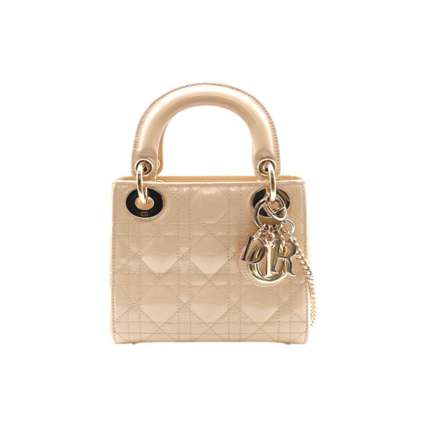 Christian Dior Patent Leather Mini Lady Dior Bag In Beige