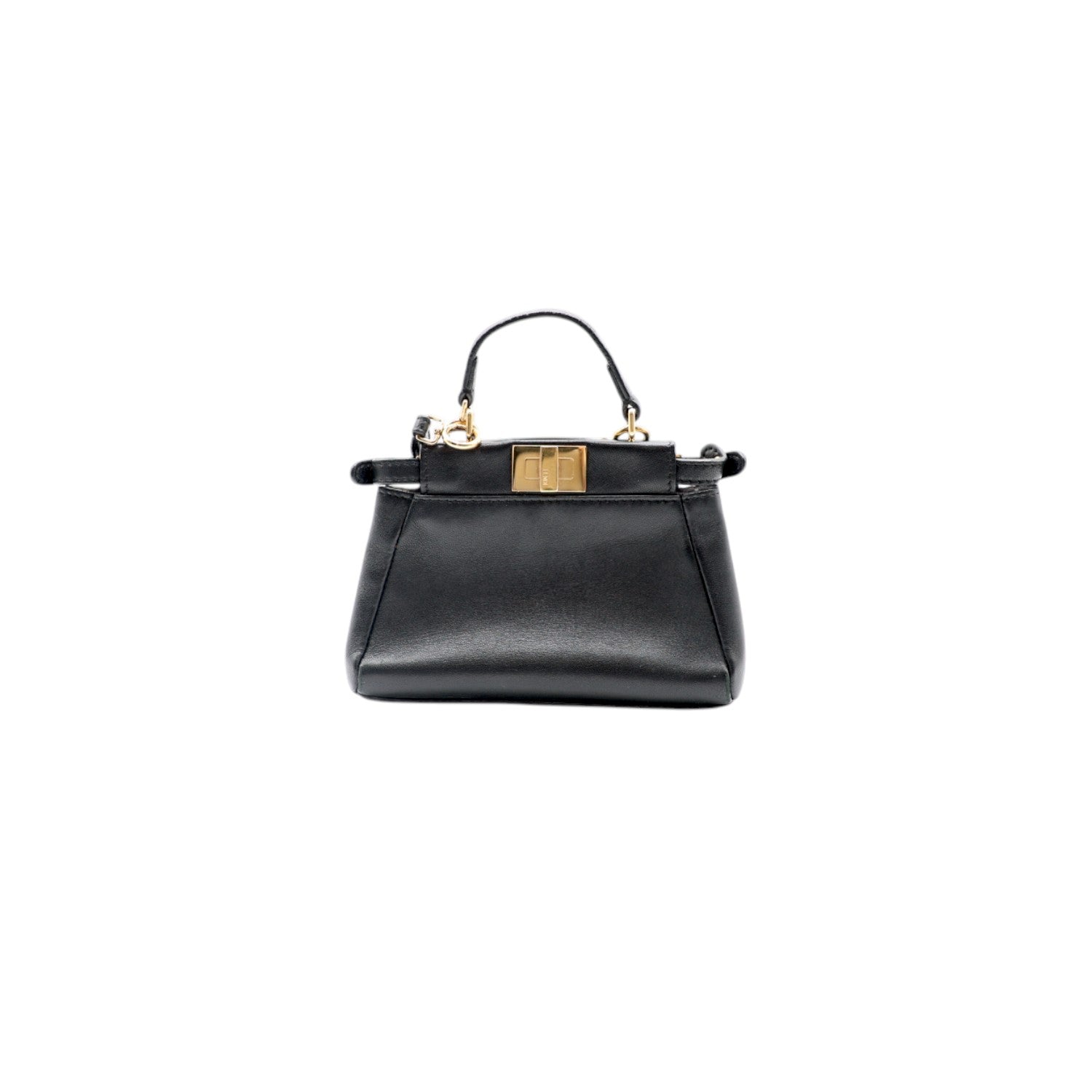 Discover the Fendi Mini Peekaboo Leather Bag in Black. This stylish accessory features gold hardware that adds a touch of luxury. The bag is designed with a detachable crossbody strap, offering versatile wear options. Perfect for those who appreciate both fashion and functionality.
