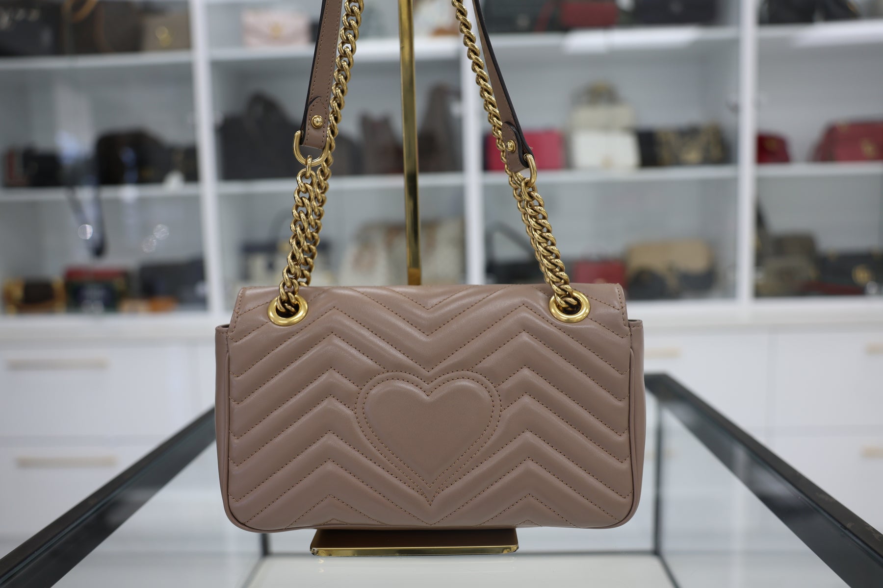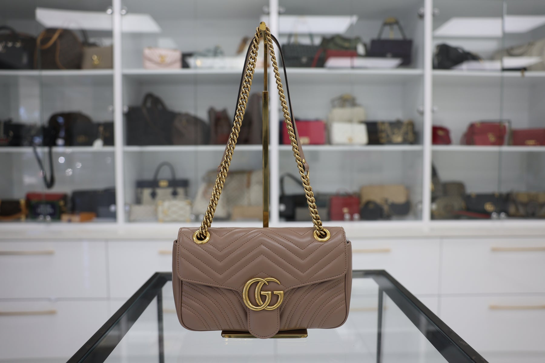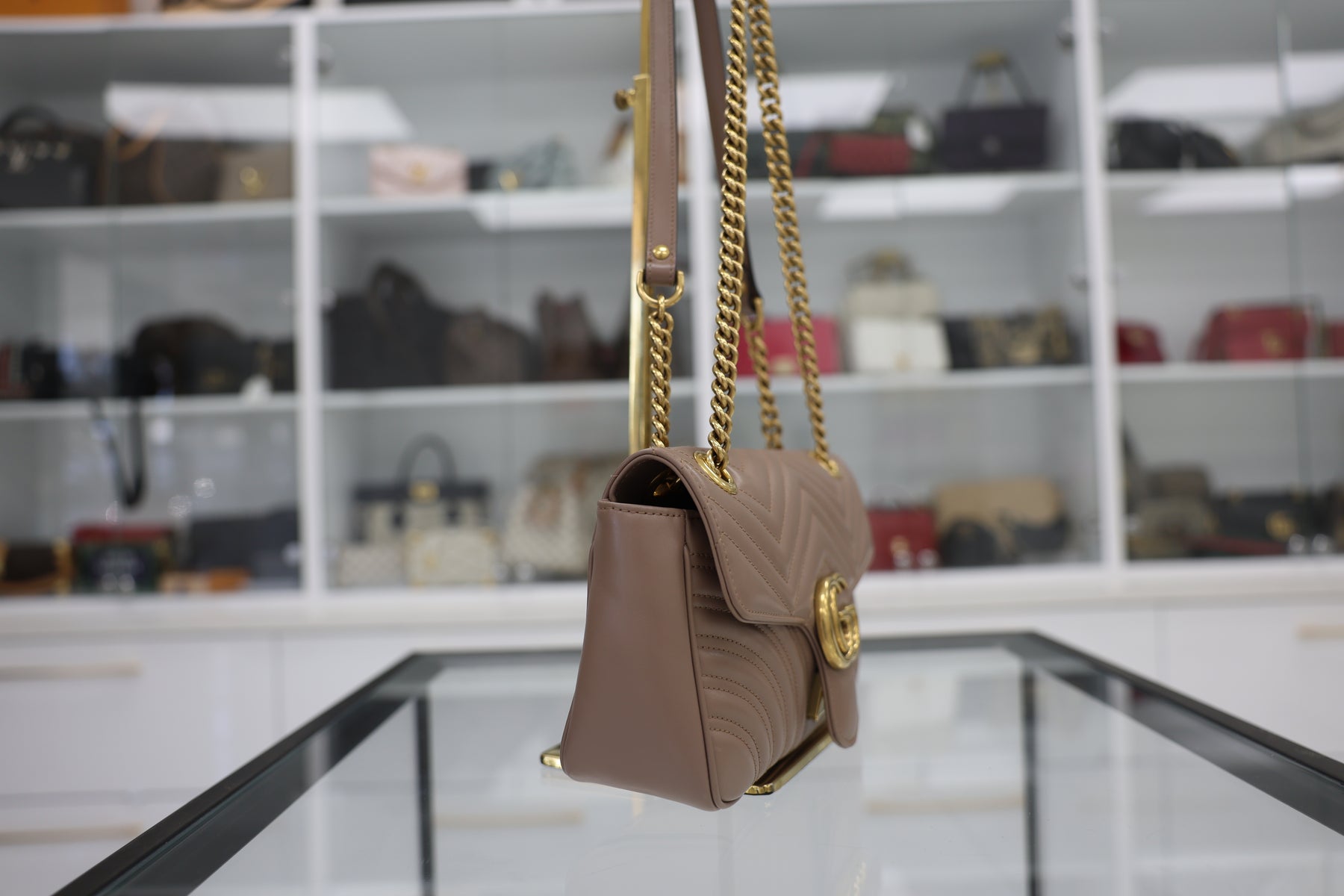 The Gucci GG Marmont matelassé leather shoulder bag exemplifies Italian craftsmanship with its signature quilted leather construction and iconic interlocking GG hardware. This versatile silhouette features a structured yet elegant design, perfect for both professional and casual occasions. The supple matelassé leather develops a beautiful patina over time, while the adjustable shoulder strap offers comfortable carry options. An interior compartment provides practical storage for daily essentials. A timeless investment piece that seamlessly transitions from day to evening wear.