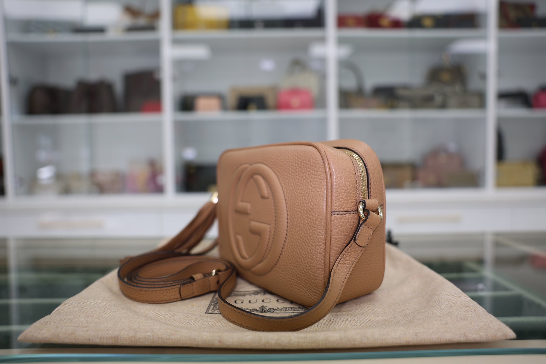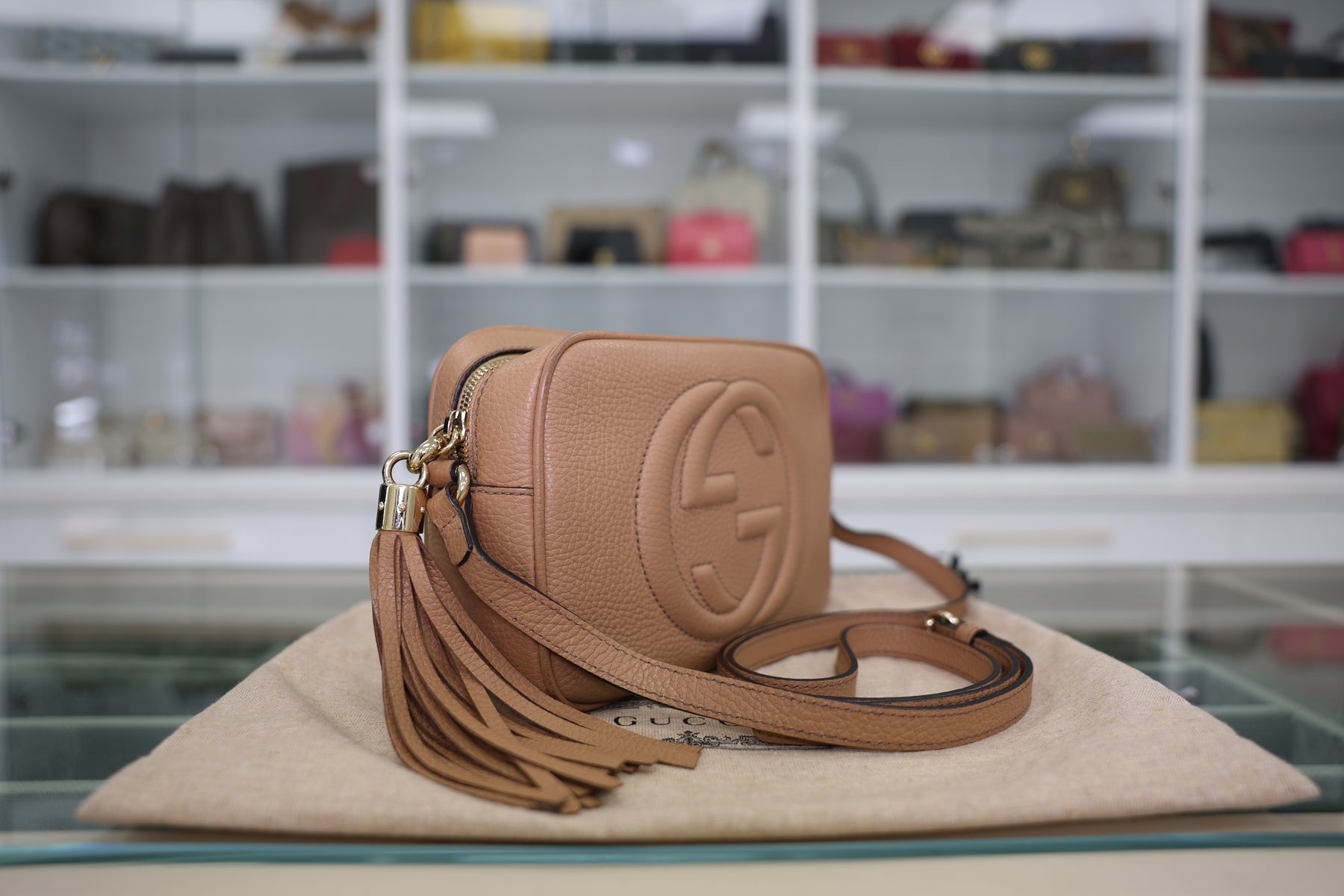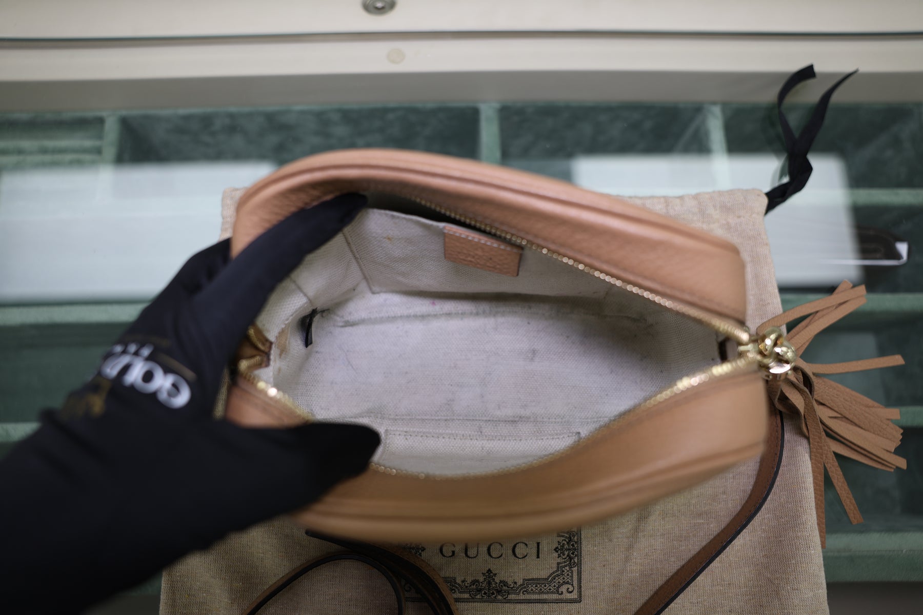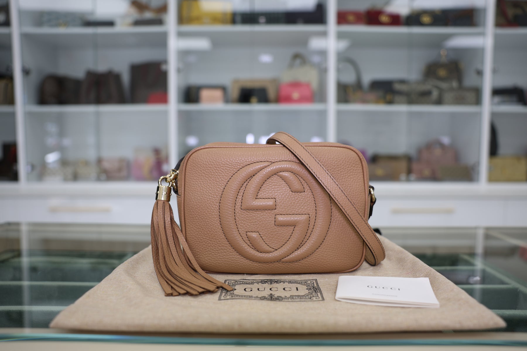 This bag is ideal for everyday use, parties, or any occasion where you want to make a statement. The Rose Beige color ensures it complements a variety of outfits. Elevate your style with the Gucci Soho Small Disco Bag.