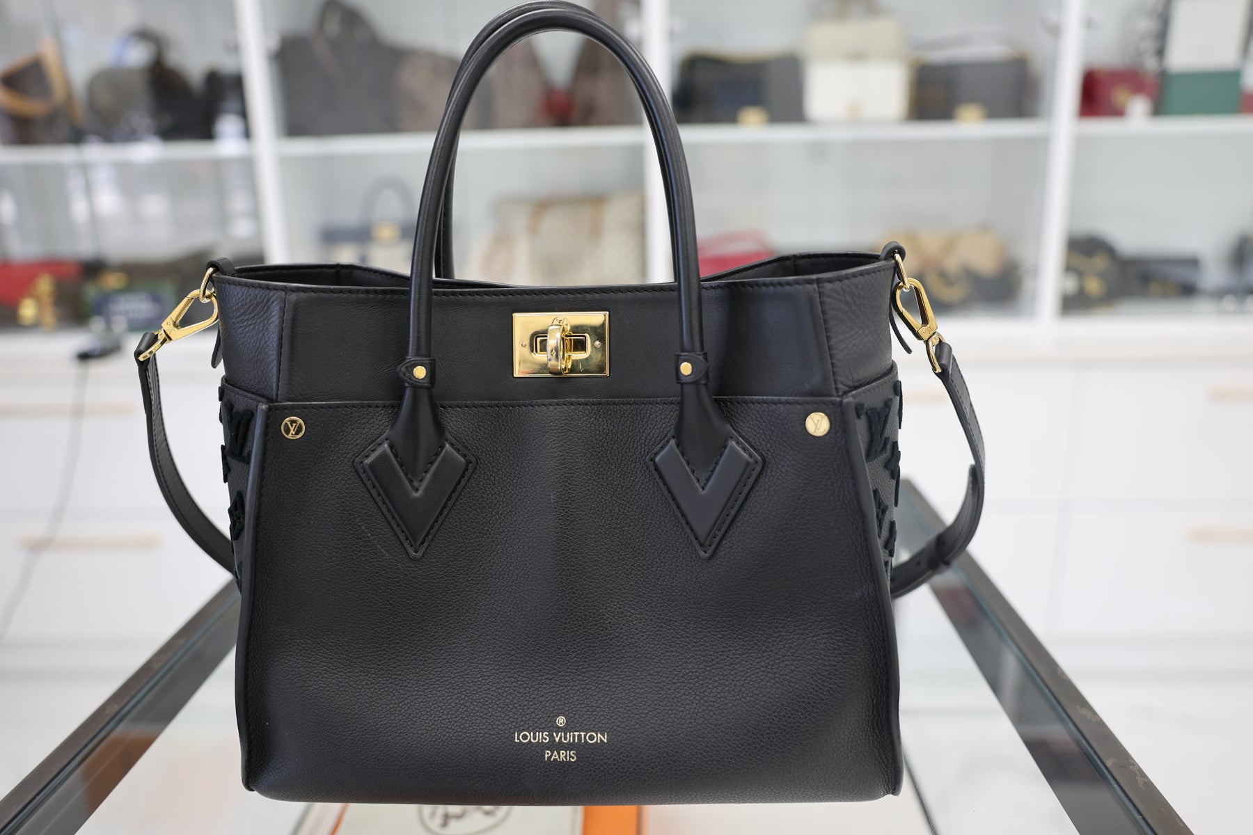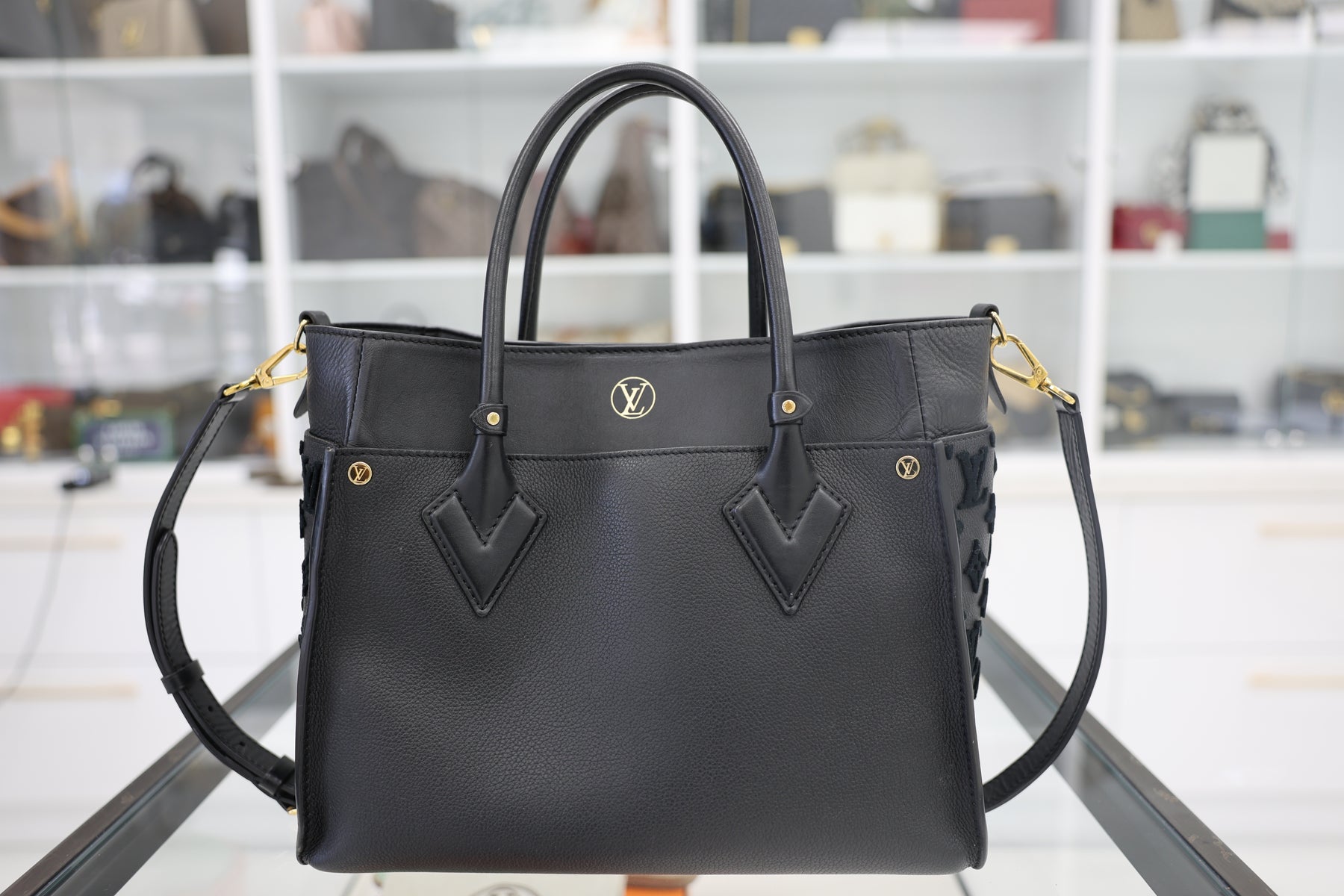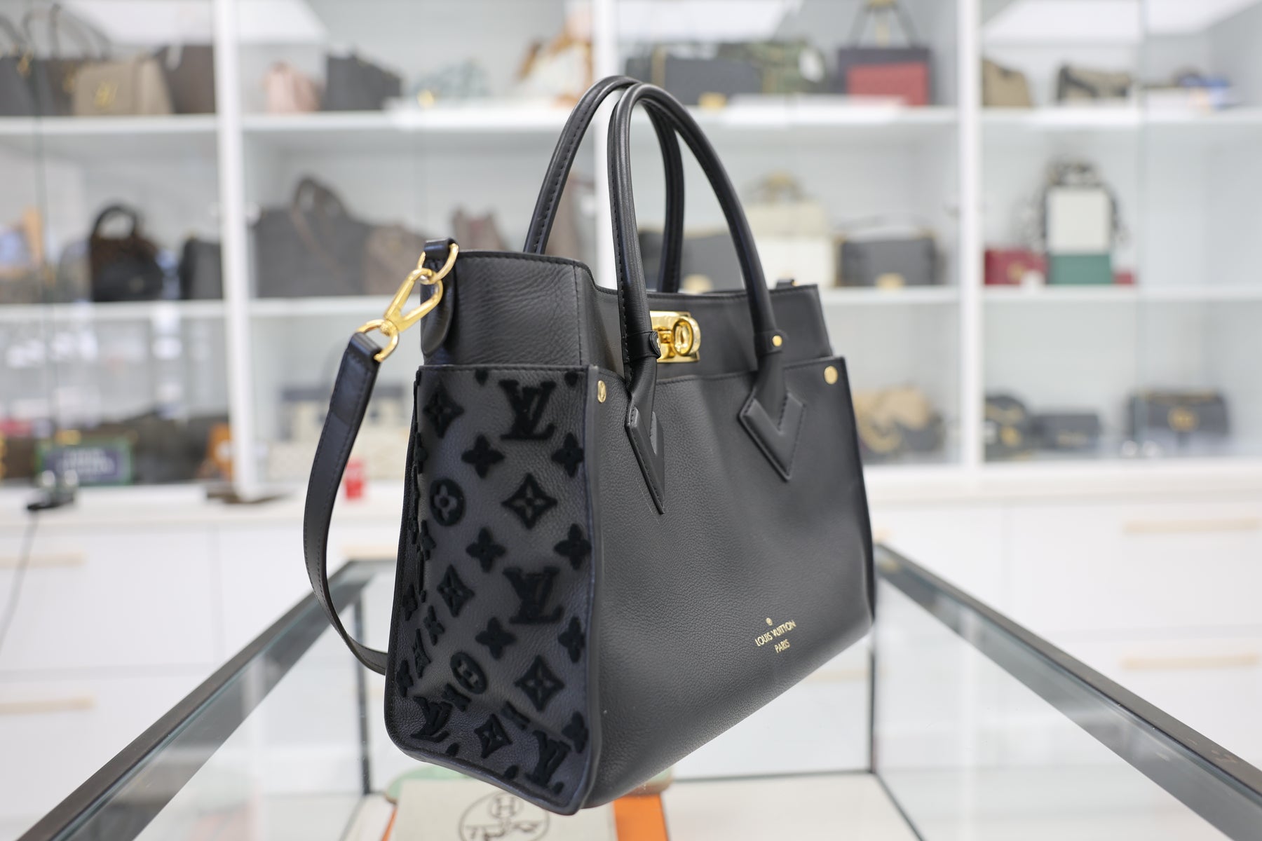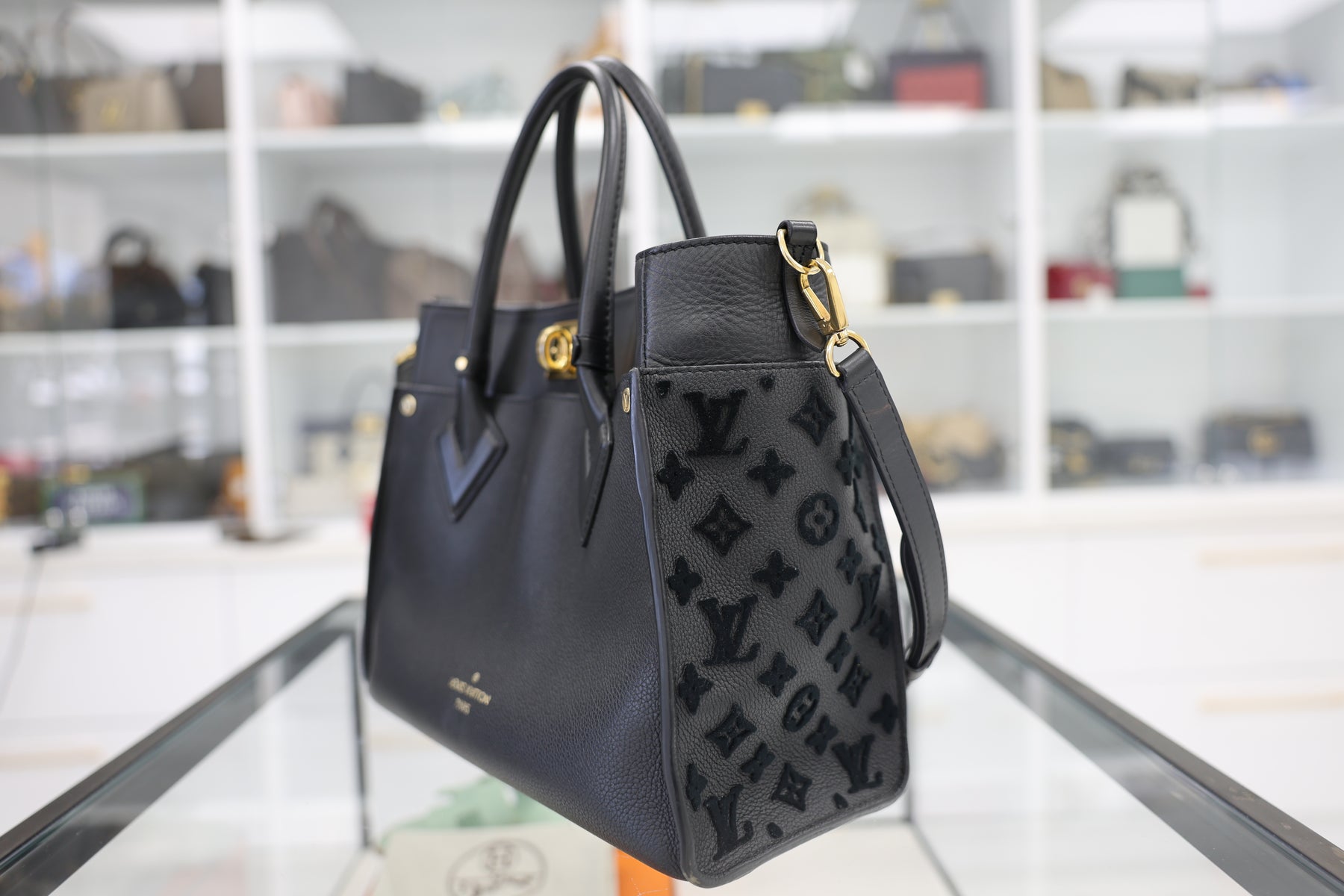 The Louis Vuitton On My Side MM combines timeless elegance with contemporary design. This structured tote features supple calf leather construction paired with the iconic monogram embossed suede panels, creating a sophisticated two-tone aesthetic. The versatile silhouette accommodates daily essentials while maintaining a refined profile. Crafted with Louis Vuitton's signature attention to detail, this handbag seamlessly transitions from professional settings to weekend outings, making it an essential investment piece for discerning collectors.
