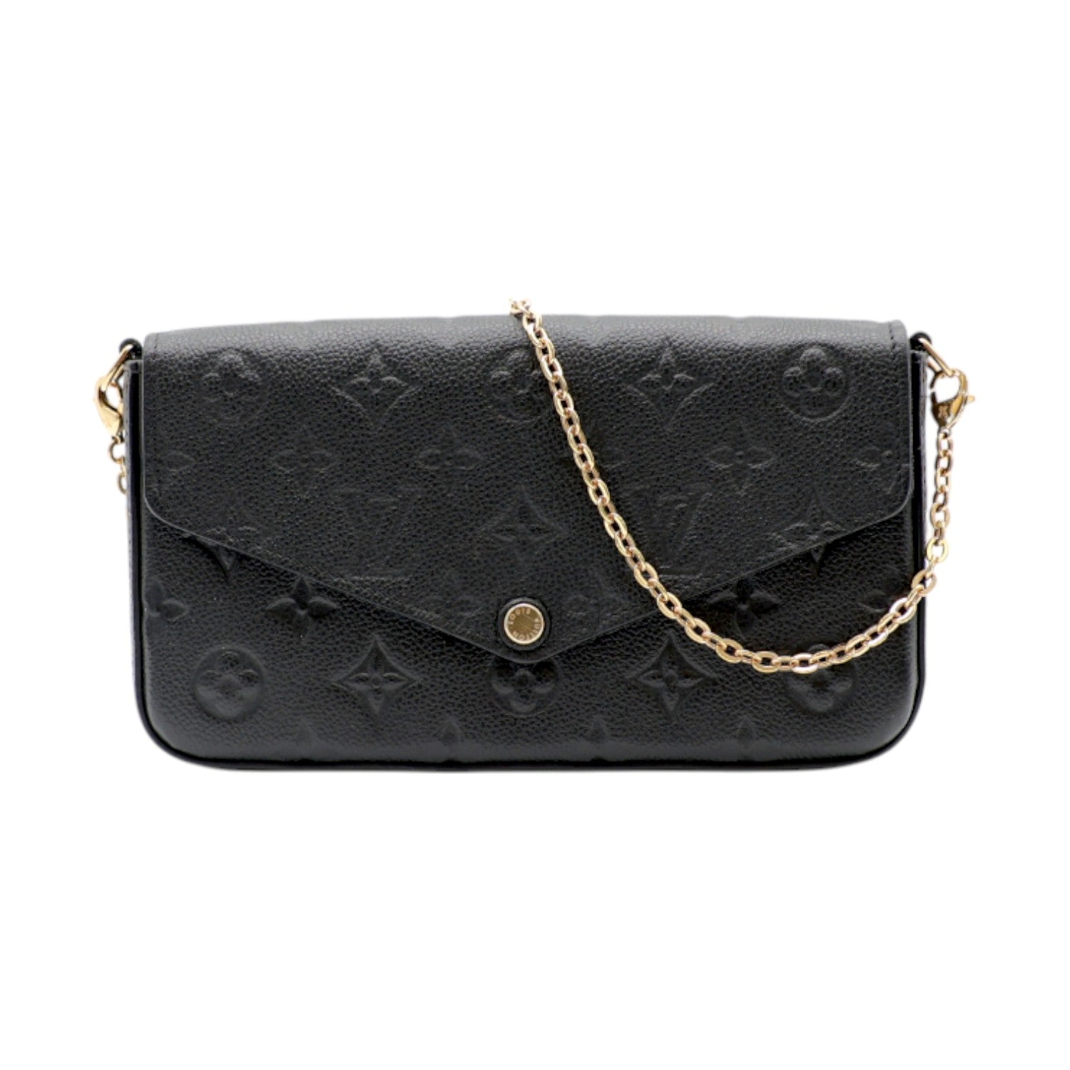 The Louis Vuitton Pochette Félicie Empreinte Leather Crossbody Bag In Black is a stylish accessory. It features a sleek black color and empreinte leather. The bag is designed for crossbody use, offering convenience and elegance. Perfect for those who appreciate Louis Vuitton's iconic style.