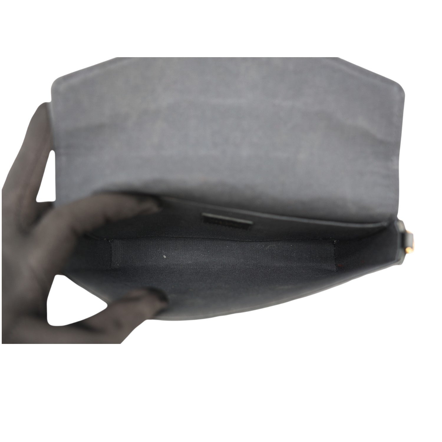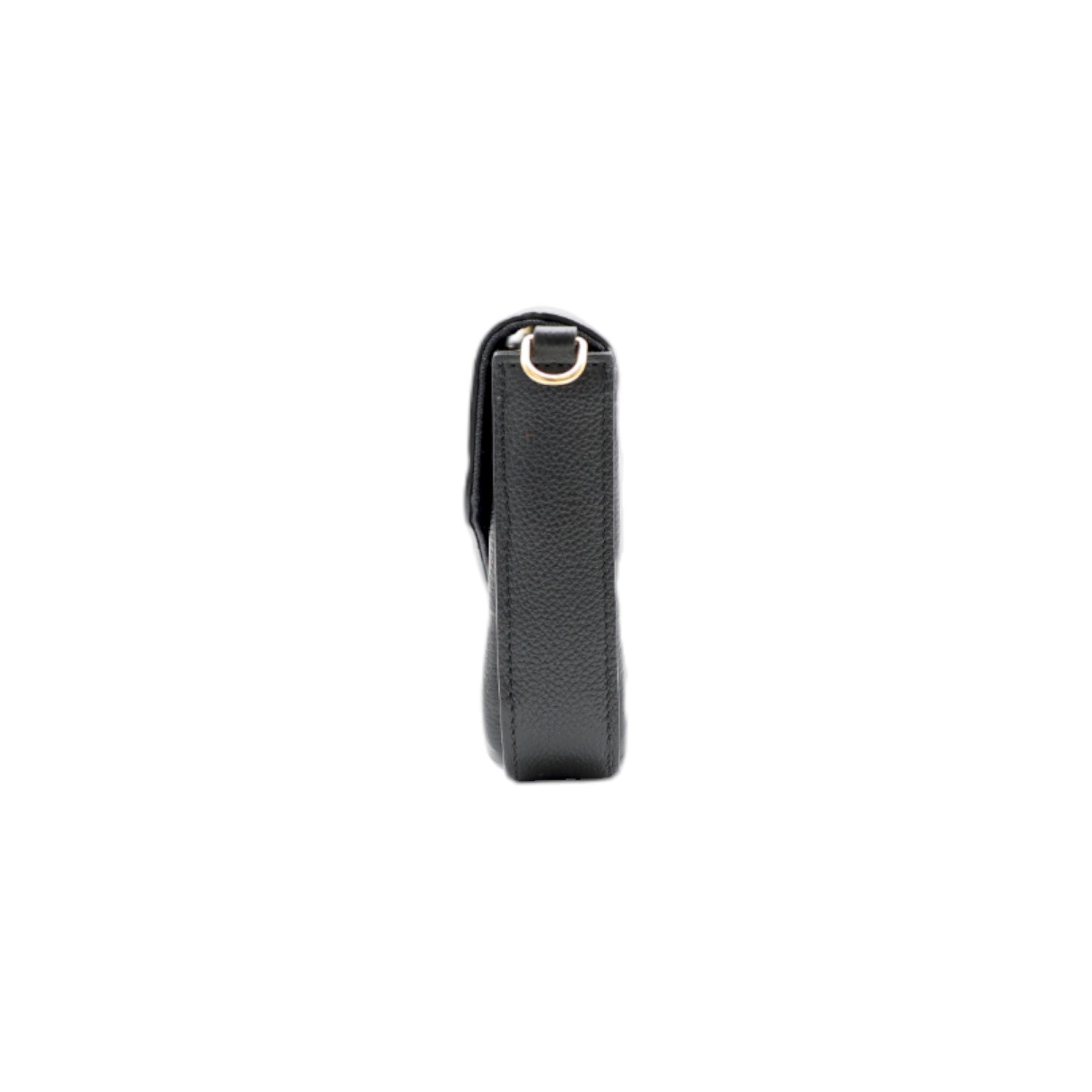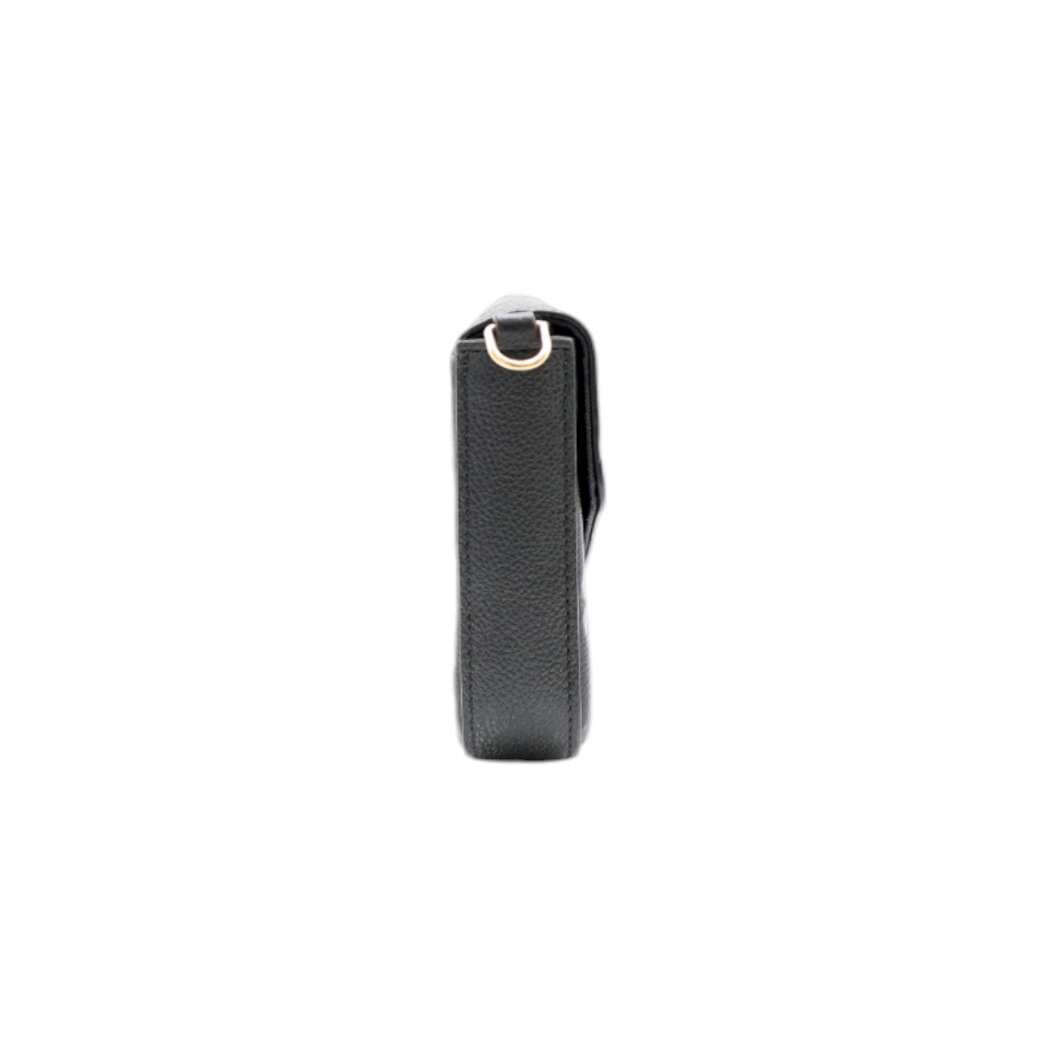 The image shows the bag in black empreinte leather. It has a classic crossbody design. The bag is shown in a sleek black color, highlighting its elegant appearance. The empreinte leather adds a unique texture. Ideal for everyday use.