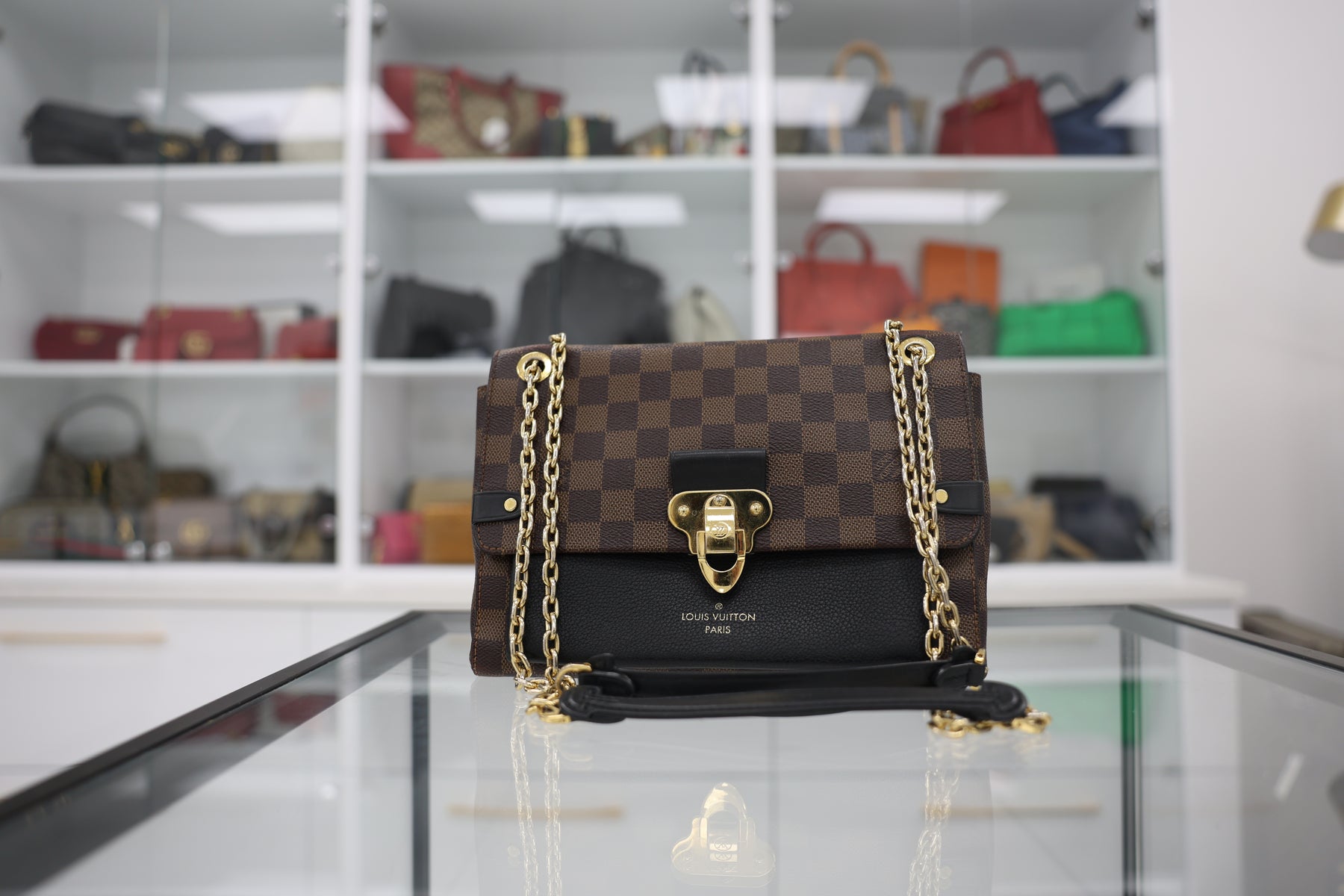 The Louis Vuitton Vavin PM in Damier Ebene combines timeless elegance with practical sophistication. This structured shoulder bag features the iconic Damier canvas pattern, a hallmark of Louis Vuitton craftsmanship, paired with rich leather trim and polished hardware. The compact PM size offers versatile styling for both professional and casual occasions, while the adjustable shoulder strap ensures comfortable carry. An interior zippered pocket and organized compartments provide functional storage for daily essentials. A refined choice for those who appreciate heritage luxury and enduring design.