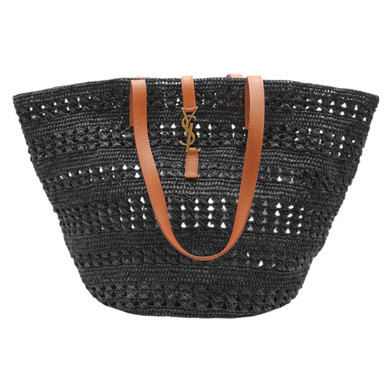 YSL Saint Laurent Panier Medium Raffia Tote Bag In Black