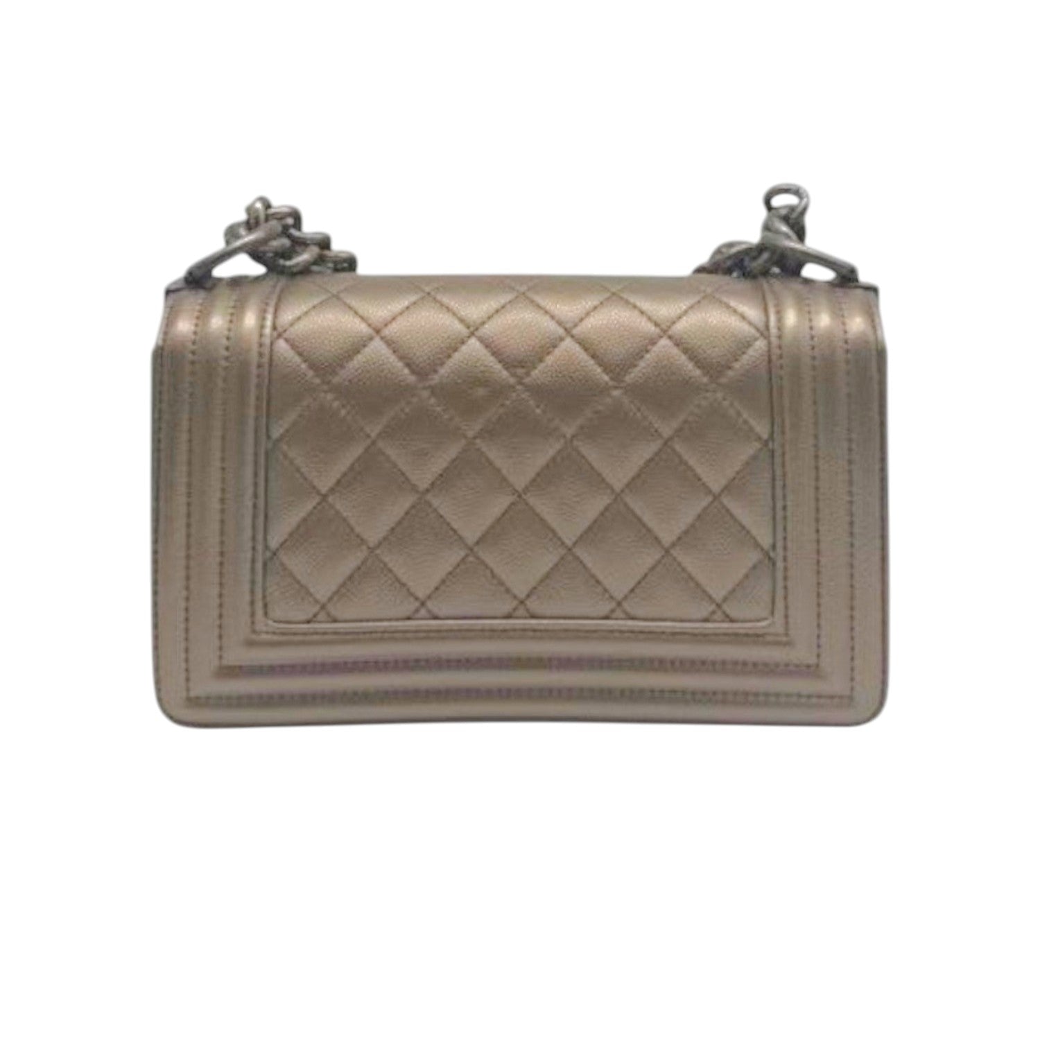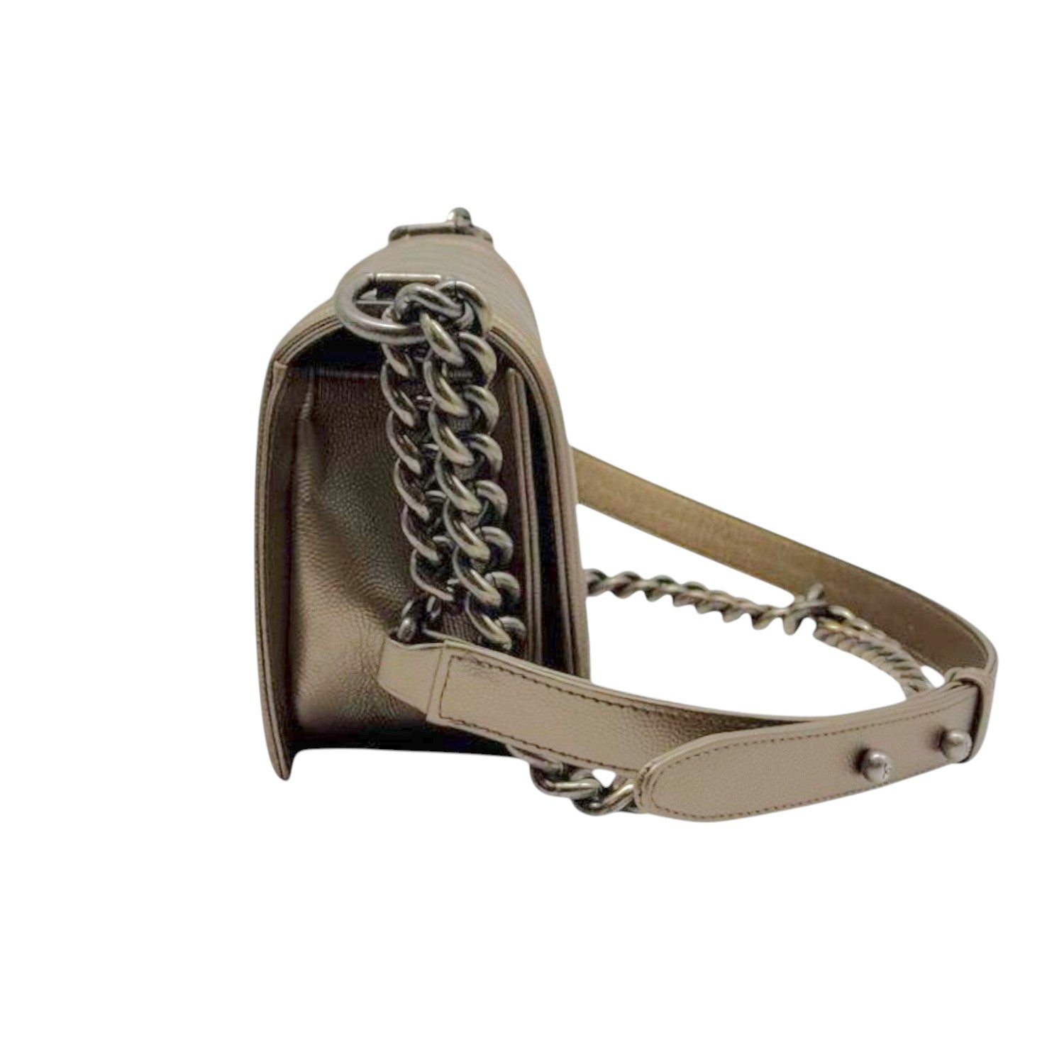 Chanel Boy Matelasse Leather Crossbody Bag Bronze Gold Quilted Design with Chain Strap & Iconic Logo Closure
