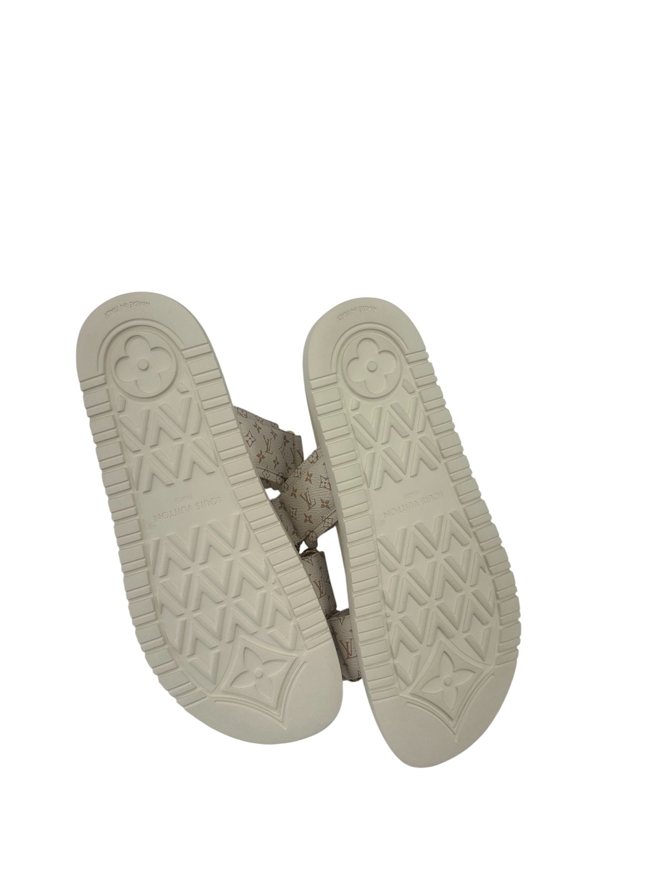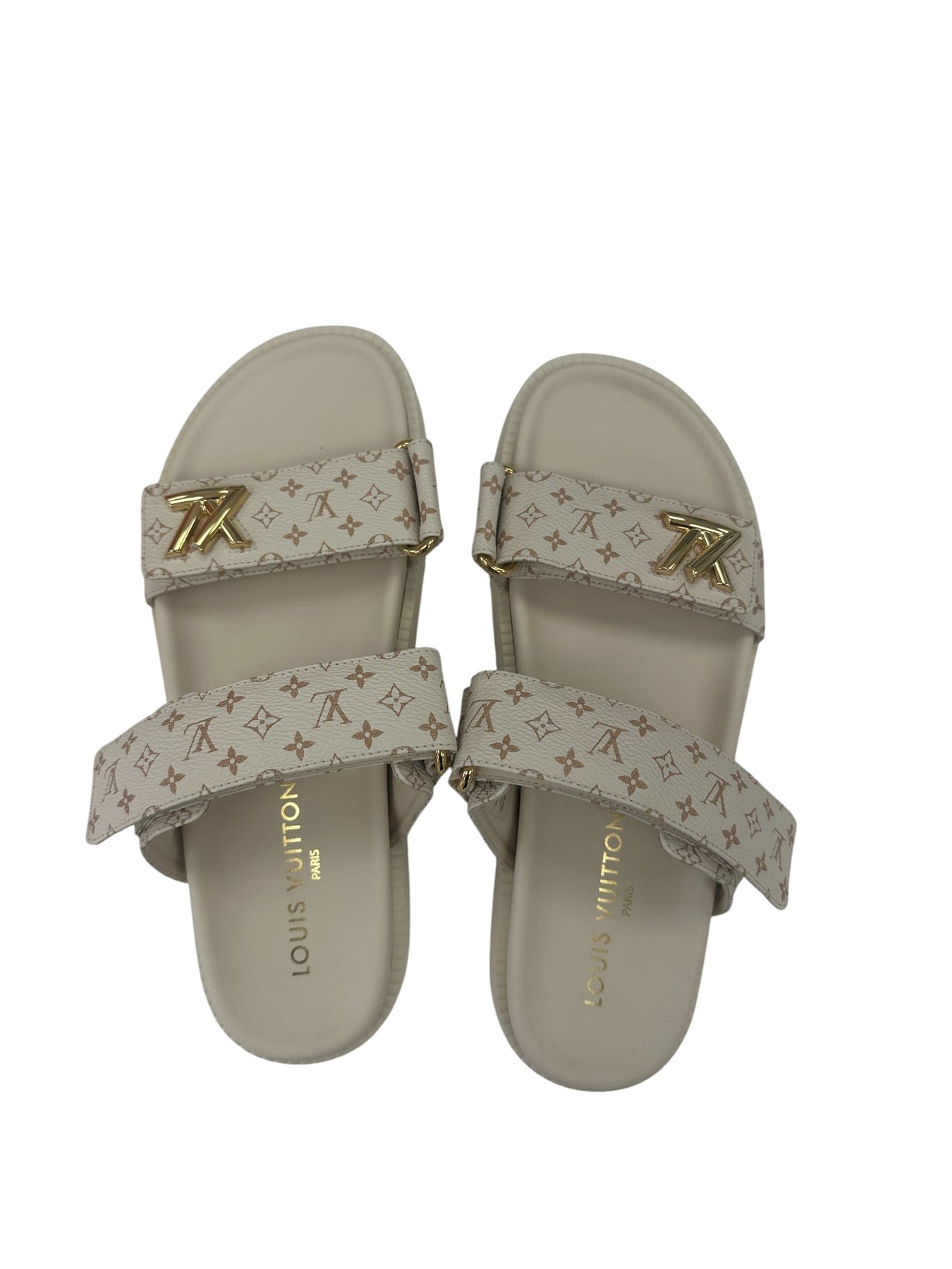 Louis Vuitton Women's Sandals in like-new condition offer timeless elegance with the luxury craftsmanship you expect from this iconic house. These sandals feature the brand's signature design elements and premium materials, presenting minimal signs of wear. Perfect for elevating casual or resort wear, they deliver sophisticated style with the comfort and quality that defines Louis Vuitton's footwear collection. An excellent choice for discerning shoppers seeking authentic luxury at a more accessible price point.