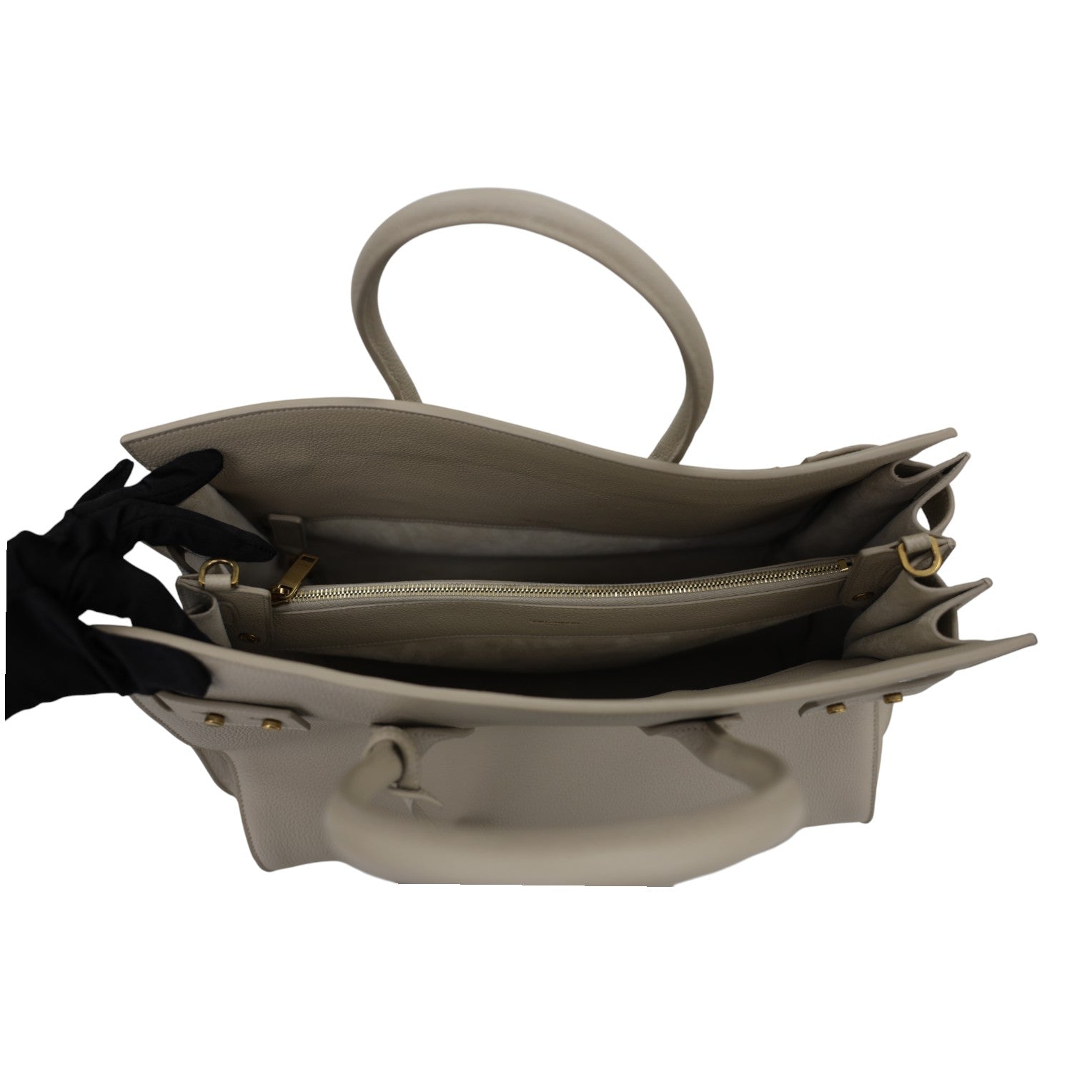 Elevate your everyday with this authentic Yves Saint Laurent top handle tote in timeless beige. Crafted with the luxury and precision YSL is renowned for, this piece features a refined silhouette and comfortable top handles for effortless carrying. The included shoulder strap offers versatile styling options, transitioning seamlessly from day to evening. In excellent condition, this investment bag showcases minimal wear and maintains its impeccable finish. A sophisticated essential for the discerning collector who appreciates enduring design and uncompromising quality.