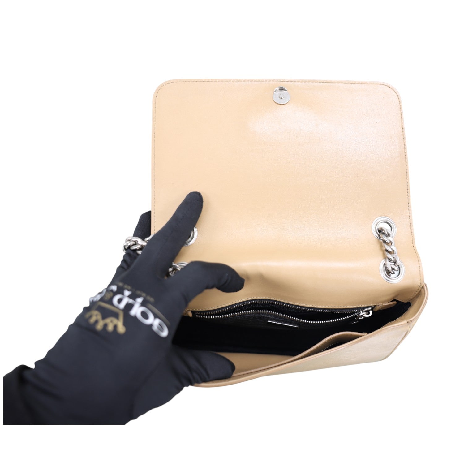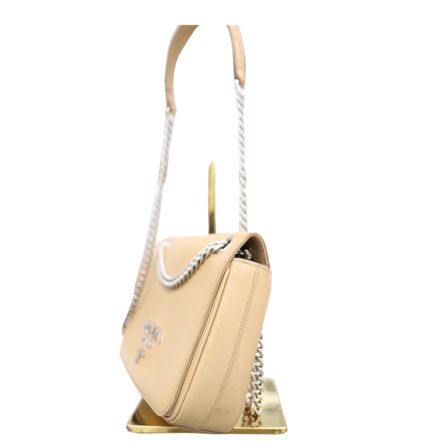 Crafted from premium Saffiano leather, this Prada handbag exemplifies Italian luxury and refined craftsmanship. The distinctive cross-hatched texture of Saffiano leather offers exceptional durability while maintaining an elegant aesthetic. Featuring a structured silhouette with the iconic Prada hardware, this piece seamlessly transitions from professional settings to sophisticated occasions. The spacious interior accommodates daily essentials with ease, while the secure closure ensures peace of mind. A timeless investment that embodies Prada's commitment to quality and enduring style.